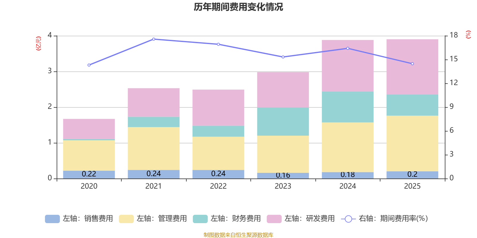 2025年全年,公司研发投入金额为1.55亿元,同比增长7.4%;研发投入占营业收入比例为5.77%,相比上年同期下降0.35个百分点。此外,公司全年研发投入资本化率为0%。