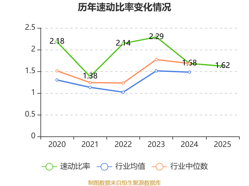 2025年,公司流动比率为2.68,速动比率为1.62。