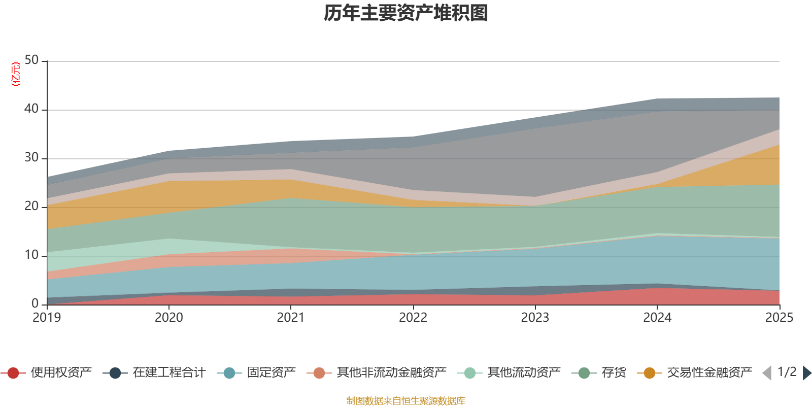 资产重大变化方面,截至2025年末,公司货币资金较上年末减少68.03%,占公司总资产比重下降20个百分点;交易性金融资产合计较上年末增加1306.72%,占公司总资产比重上升17.94个百分点;存货较上年末增加13.46%,占公司总资产比重上升2.89个百分点;固定资产较上年末增加9.43%,占公司总资产比重上升2.04个百分点。