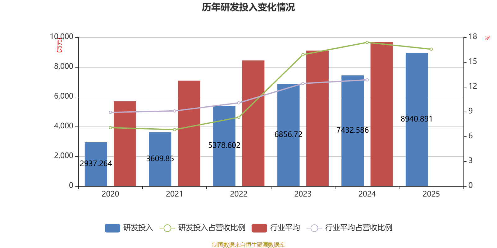 2025年全年,公司研发投入金额为8940.89万元,同比增长20.29%;研发投入占营业收入比例为16.55%,相比上年同期下降0.82个百分点。此外,公司全年研发投入资本化率为0%。