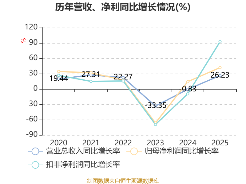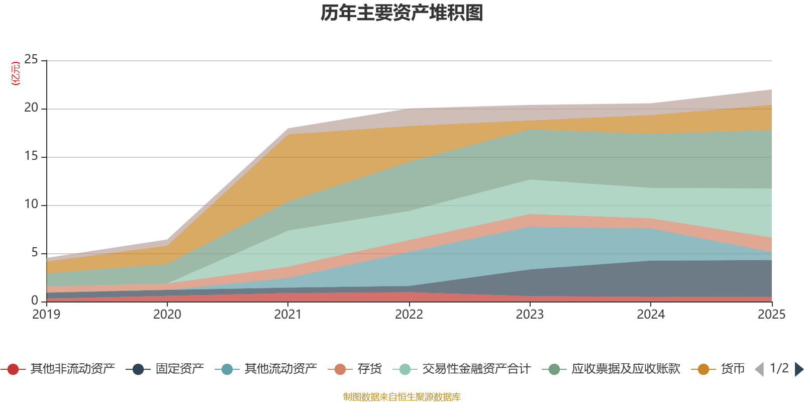 资产重大变化方面,截至2025年末,公司其他流动资产较上年末减少74.74%,占公司总资产比重下降12.47个百分点;交易性金融资产合计较上年末增加61.35%,占公司总资产比重上升7.79个百分点;货币资金较上年末增加32.73%,占公司总资产比重上升2.29个百分点;存货较上年末增加44.13%,占公司总资产比重上升1.77个百分点。