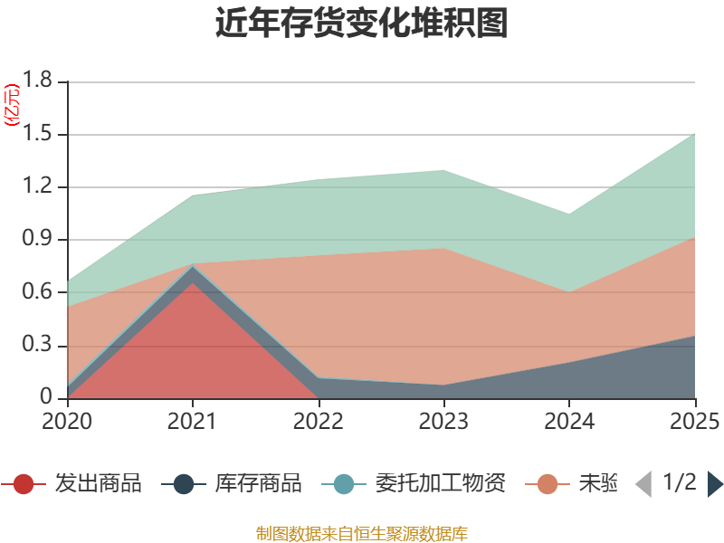 从存货变动来看,截至2025年末,公司存货账面价值为1.51亿元,占净资产的8.18%,较上年末增加4608.93万元。其中,存货跌价准备为211.17万元,计提比例为1.38%。