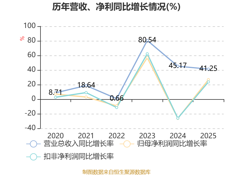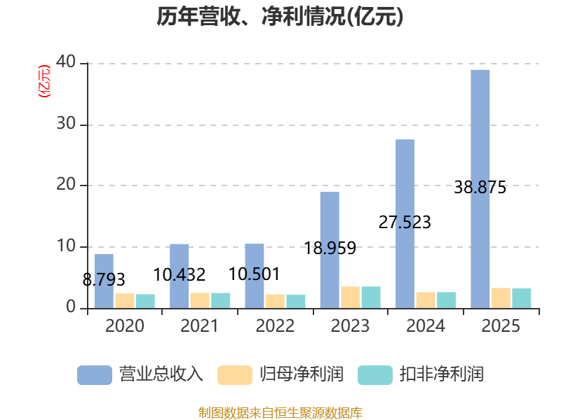 中证智能财讯金石资源(603505)4月23日披露2025年年度报告。2025年,公司实现营业总收入38.88亿元,同比增长41.25%;归母净利润3.26亿元,同比增长26.74%;扣非净利润3.21亿元,同比增长23.63%;经营活动产生的现金流量净额为1.34亿元,同比下降75.45%;报告期内,金石资源基本每股收益为0.39元,加权平均净资产收益率为18.78%。公司2025年度分配预案为:拟向全体股东每10股派现0.5元(含税)。