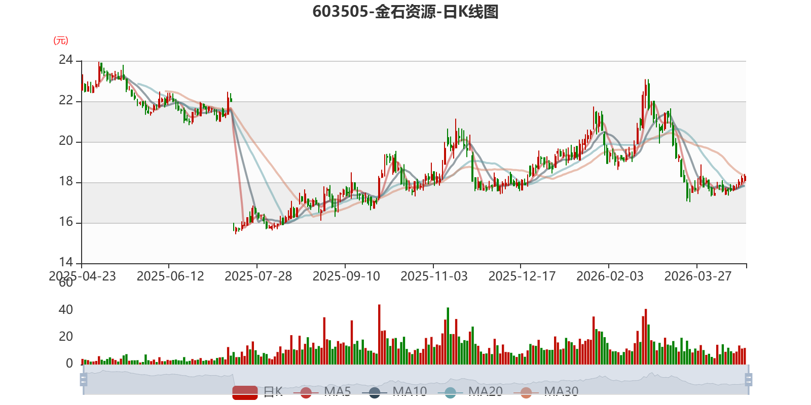 值得注意的是,中登公司数据显示,截至2026年4月17日,金石资源12.59%股份处于质押状态。年报显示,第一大股东浙江金石实业有限公司质押8424万股公司股份,占其全部持股的20.02%。