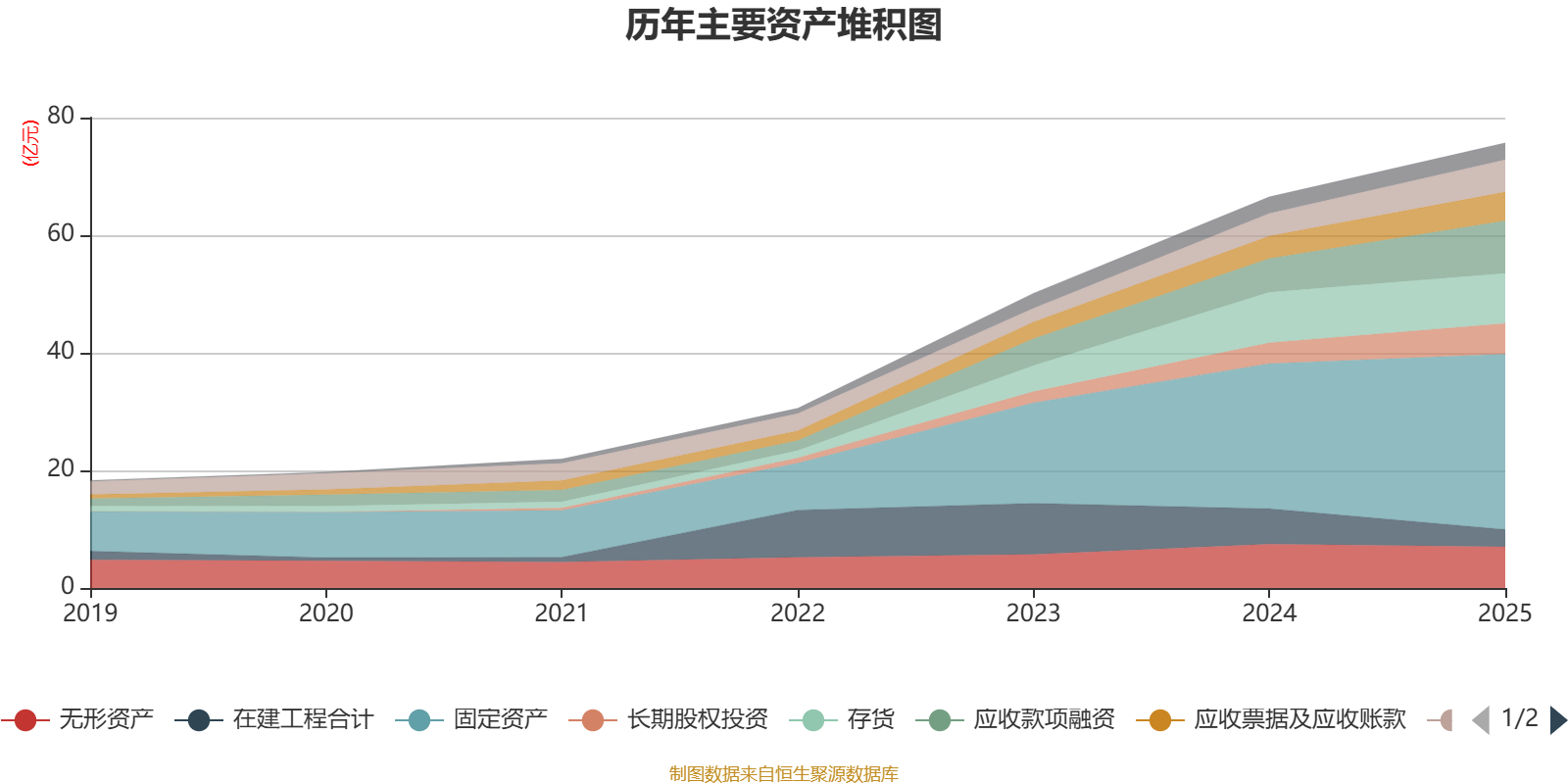 资产重大变化方面,截至2025年末,公司在建工程合计较上年末减少51.14%,占公司总资产比重下降5.17个百分点;应收款项融资较上年末增加55.89%,占公司总资产比重上升3.19个百分点;固定资产较上年末增加20.94%,占公司总资产比重上升2.34个百分点;无形资产较上年末减少6.13%,占公司总资产比重下降1.96个百分点。