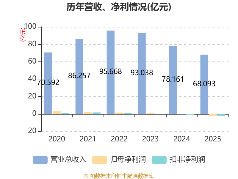 中证智能财讯澳柯玛(600336)4月23日披露2025年年度报告。2025年,公司实现营业总收入68.09亿元,同比下降12.88%;归母净利润亏损2.14亿元,上年同期亏损4852.54万元;扣非净利润亏损2.39亿元,上年同期亏损7588.6万元;经营活动产生的现金流量净额为3.3亿元,同比增长58.01%;报告期内,澳柯玛基本每股收益为-0.27元,加权平均净资产收益率为-9.17%。