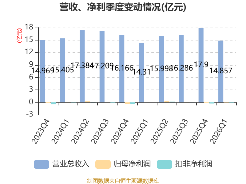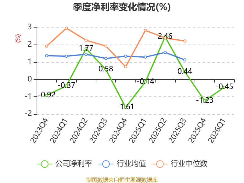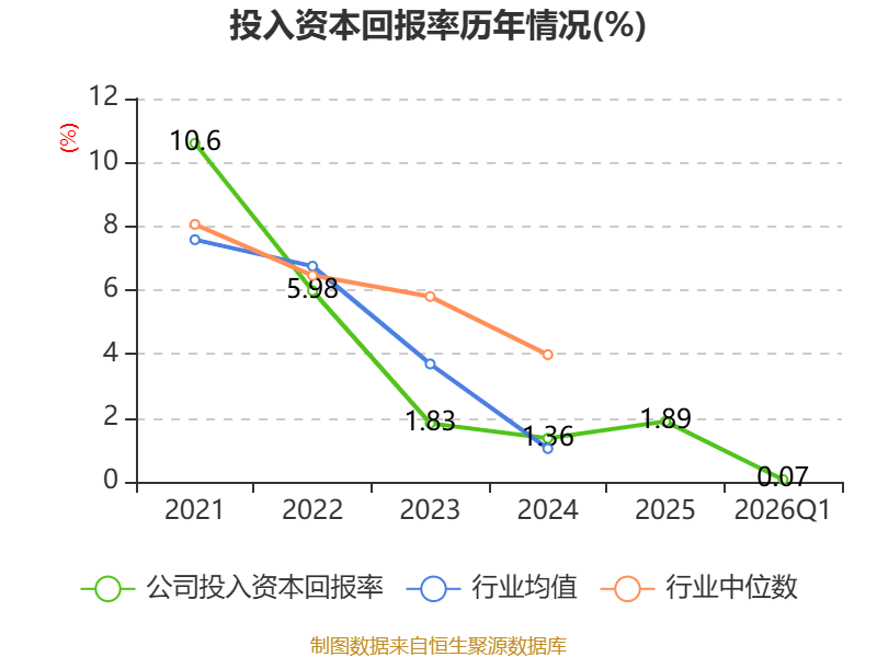 盈利能力方面, 2026年一季度公司加权平均净资产收益率为-0.49%,同比下降0.53个百分点。公司2026年第一季度投入资本回报率为0.07%,较上年同期下降0.24个百分点。