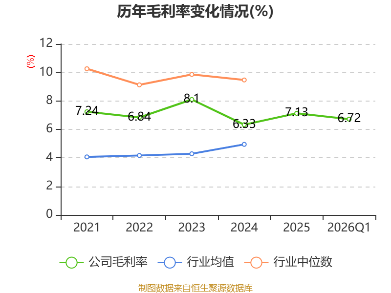 资产重大变化方面,截至2026年一季度末,公司应收票据及应收账款较上年末减少11.82%,占公司总资产比重下降3.32个百分点;货币资金较上年末增加6.99%,占公司总资产比重上升1.63个百分点;在建工程合计较上年末增加14.07%,占公司总资产比重上升1.04个百分点;预付款项较上年末减少20.29%,占公司总资产比重下降0.5个百分点。