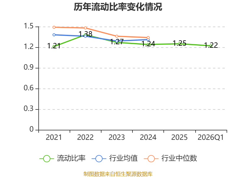 2026年第一季度,公司流动比率为1.22,速动比率为1.17。