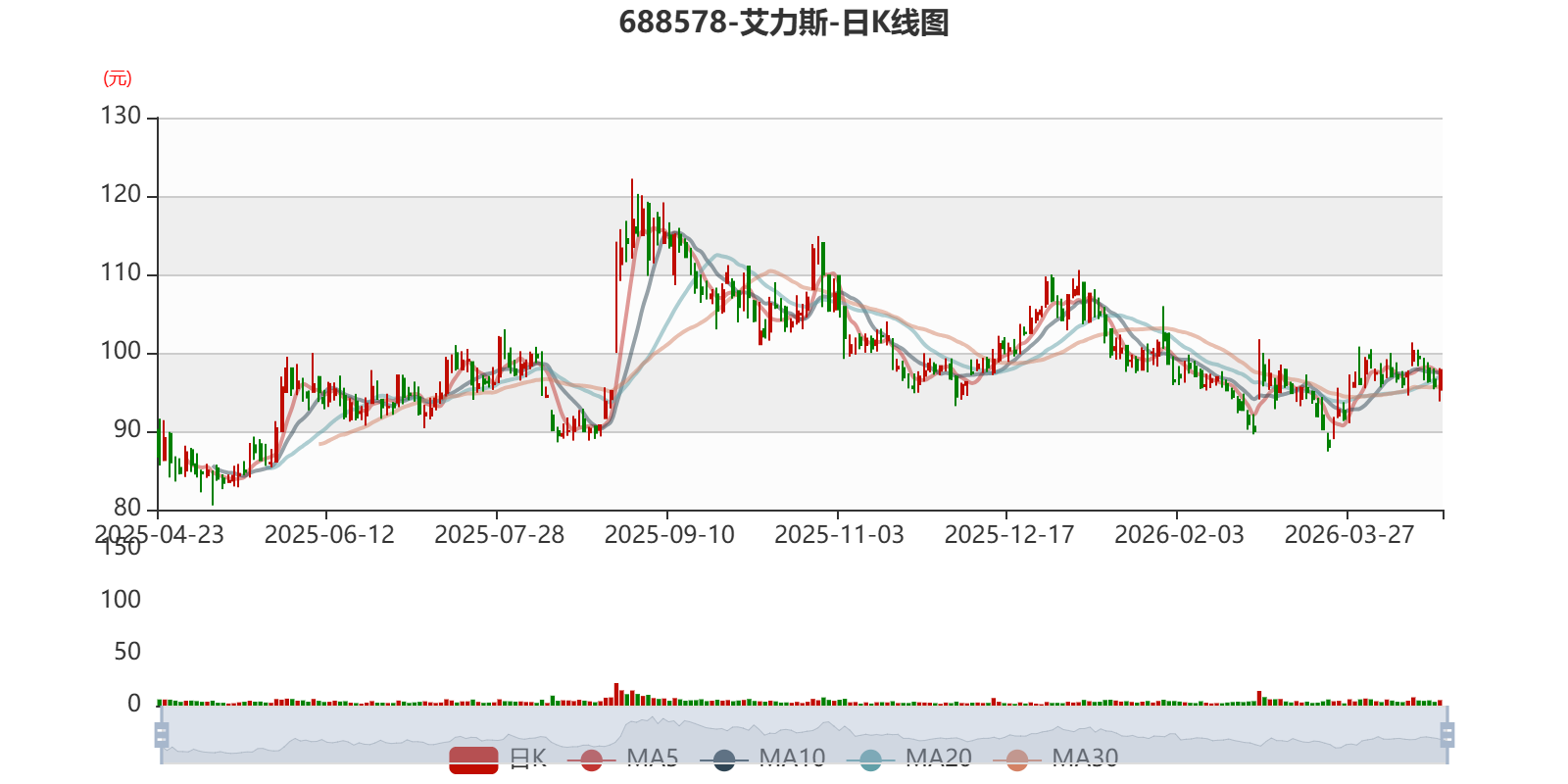 以4月22日收盘价计算,艾力斯目前市盈率(TTM)约为20.1倍,市净率(LF)约6.21倍,市销率(TTM)约8.48倍。