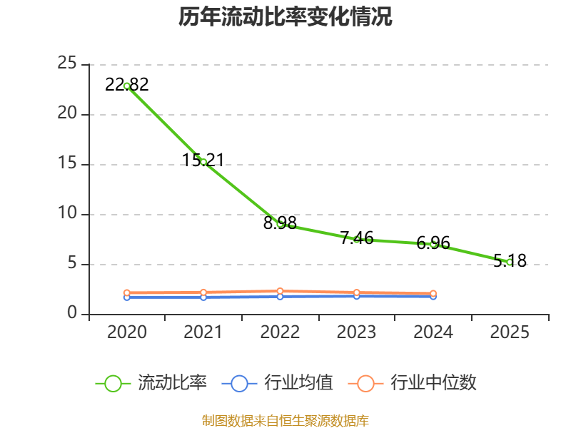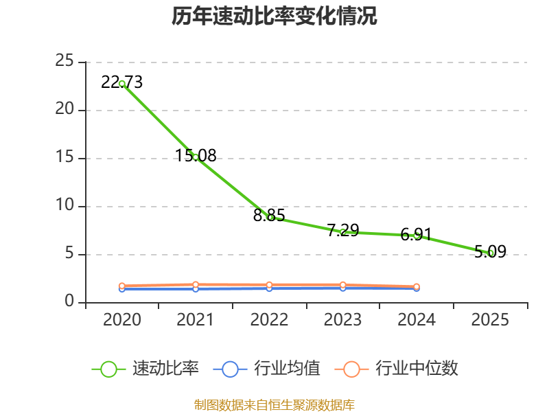 2025年,公司流动比率为5.18,速动比率为5.09。
