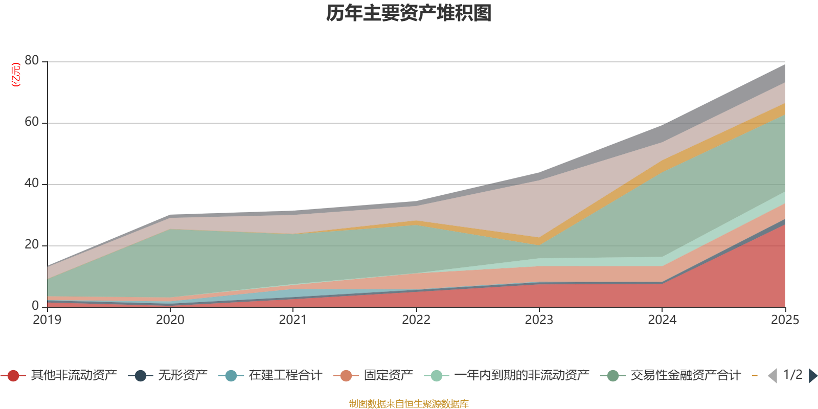 资产重大变化方面,截至2025年末,公司其他非流动资产较上年末增加262.17%,占公司总资产比重上升21.44个百分点;交易性金融资产合计较上年末减少9%,占公司总资产比重下降14.87个百分点;固定资产较上年末增加0.42%,占公司总资产比重下降2.14个百分点;其他权益工具投资较上年末减少26.15%,占公司总资产比重下降1.85个百分点。