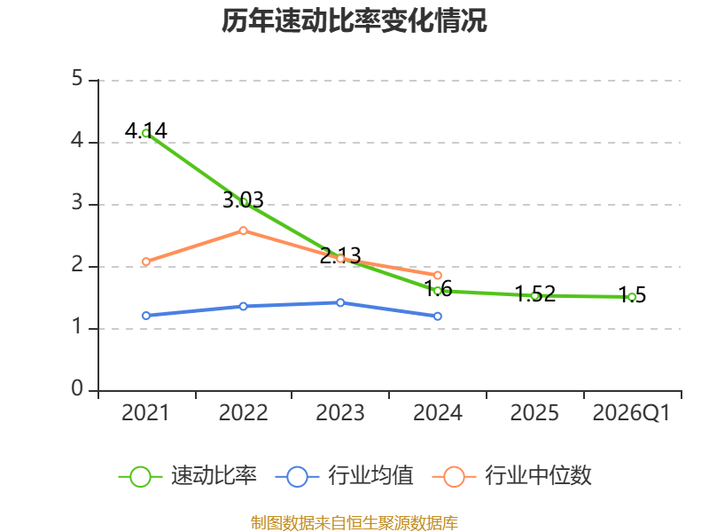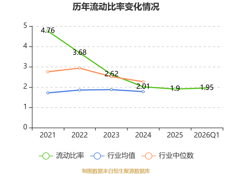 2026年第一季度,公司流动比率为1.95,速动比率为1.5。