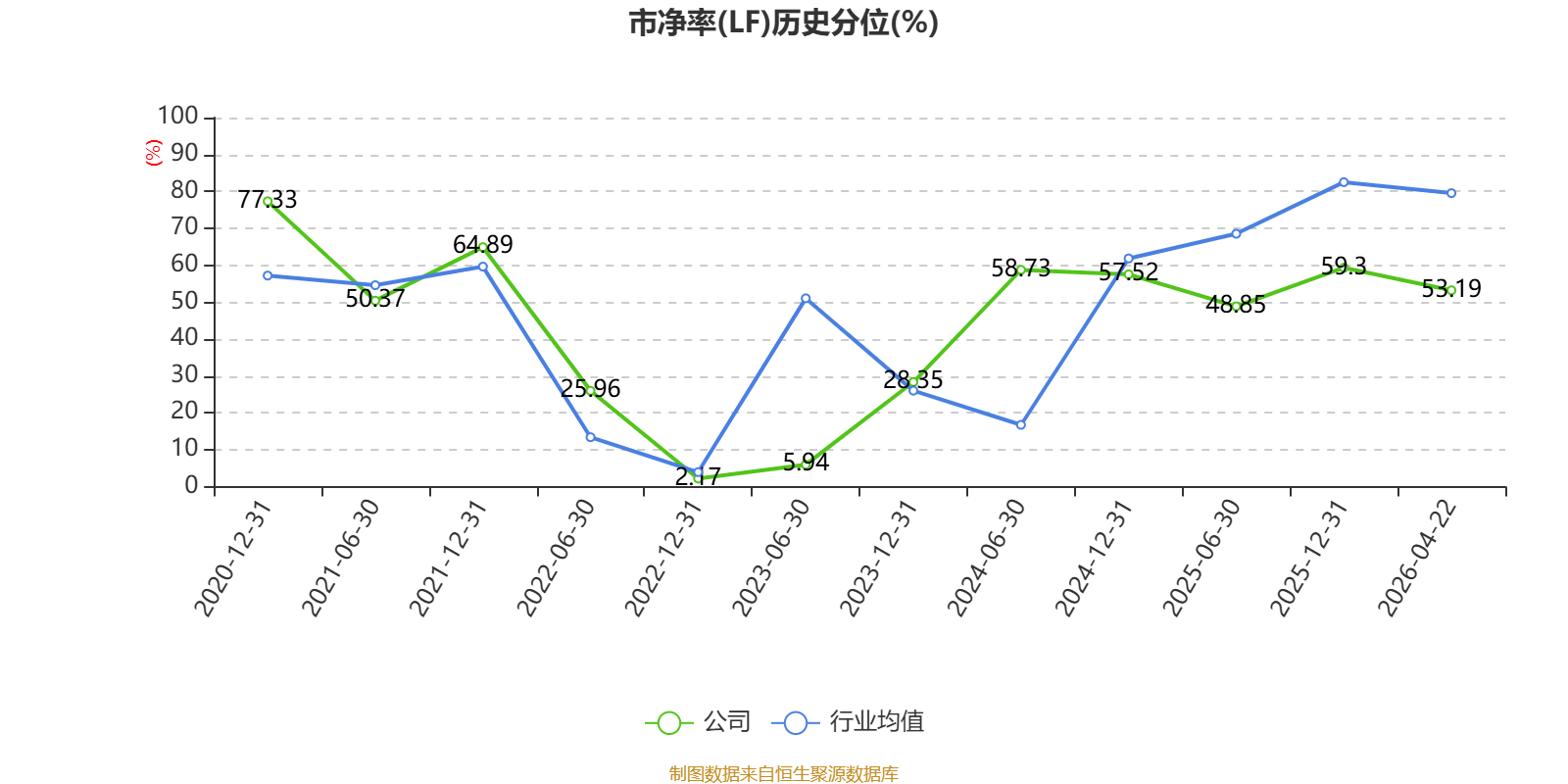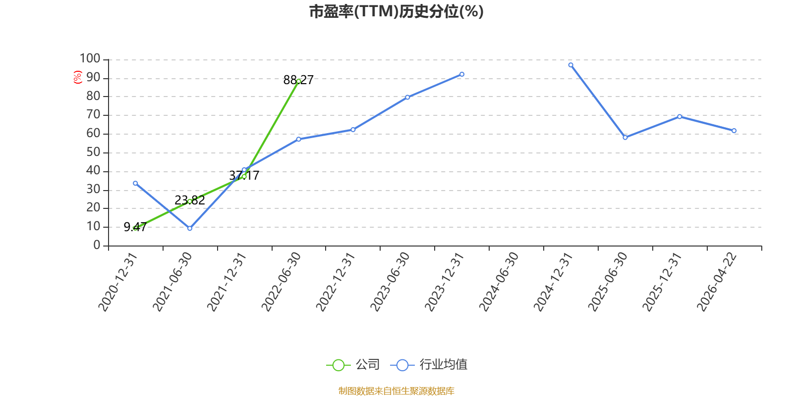 市盈率、市净率为负时,不显示当期分位数,会导致折线图中断。