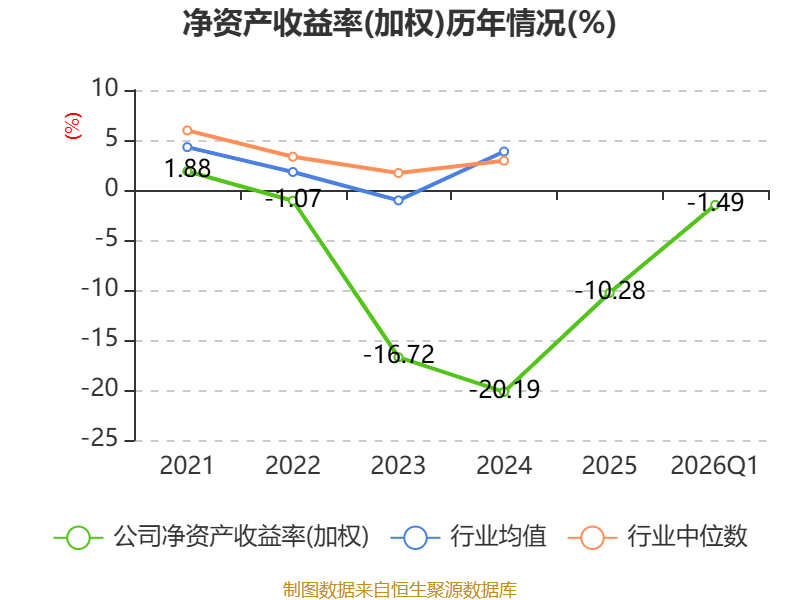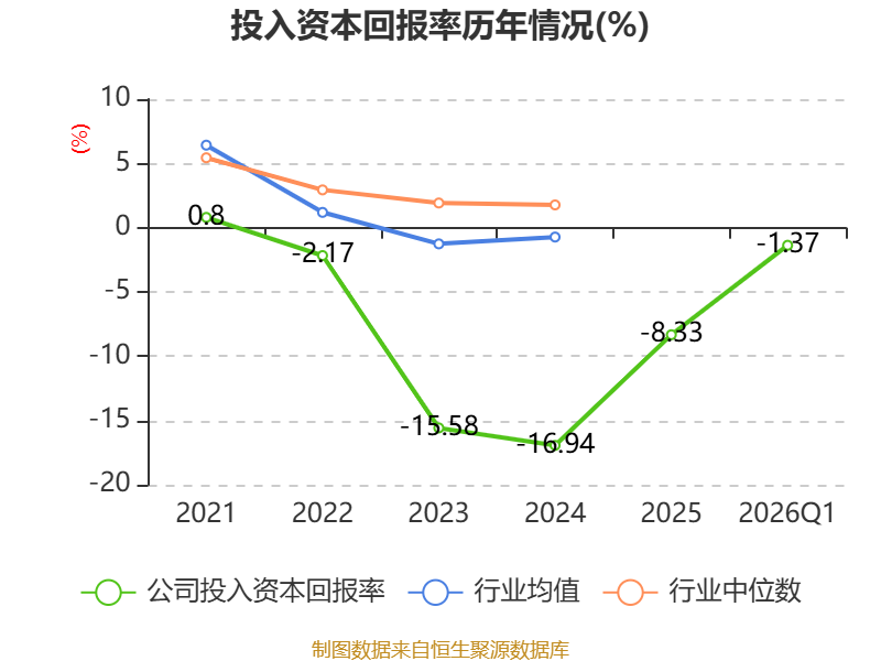 盈利能力方面, 2026年一季度公司加权平均净资产收益率为-1.49%,同比上升1.23个百分点。公司2026年第一季度投入资本回报率为-1.37%,较上年同期上升0.92个百分点。