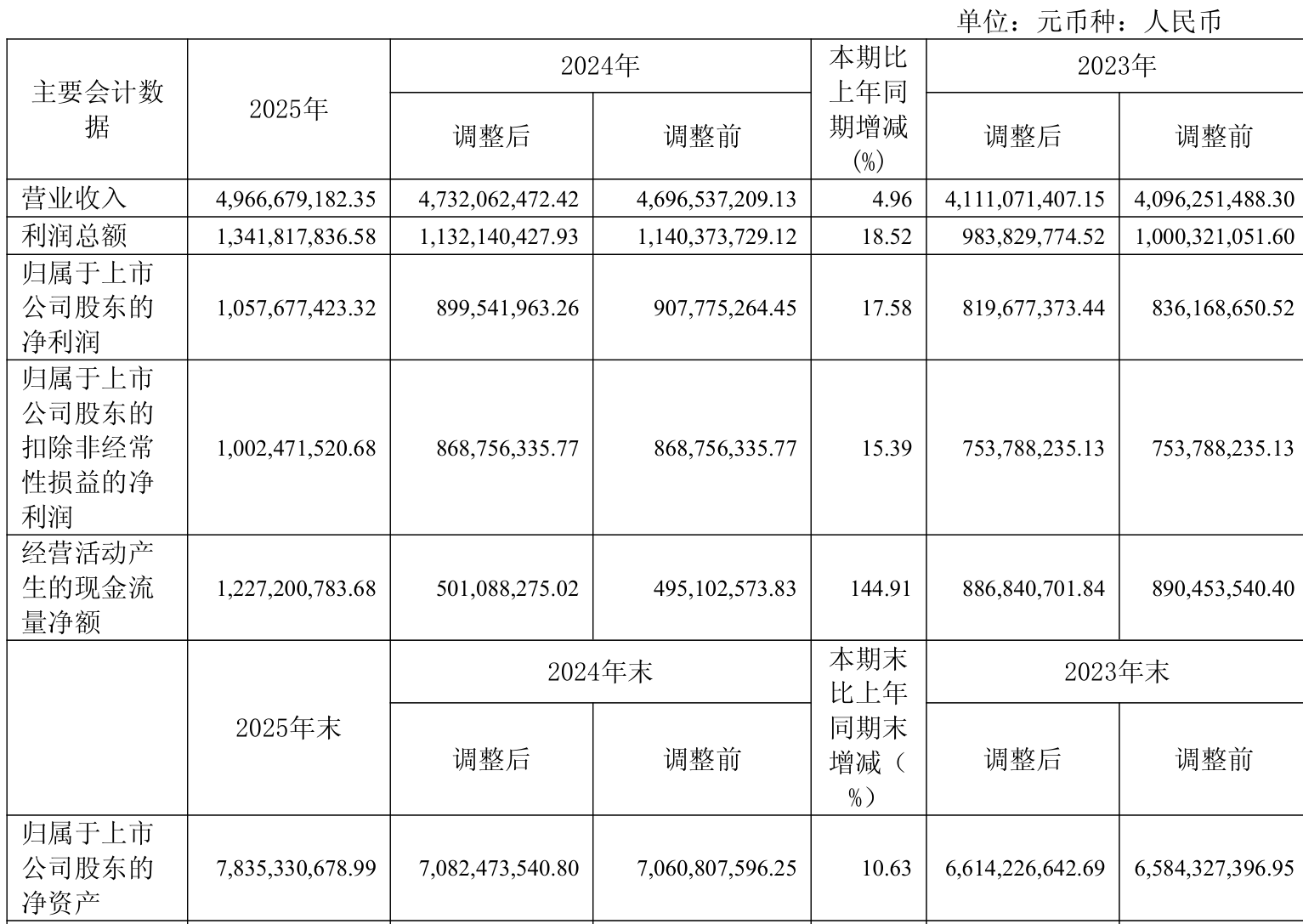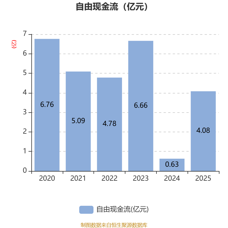 截至2025年,公司经营活动现金流净额为12.27亿元,同比增长144.91%;筹资活动现金流净额5.8亿元,同比增加10.22亿元;投资活动现金流净额-7.16亿元,上年同期为-6.24亿元。