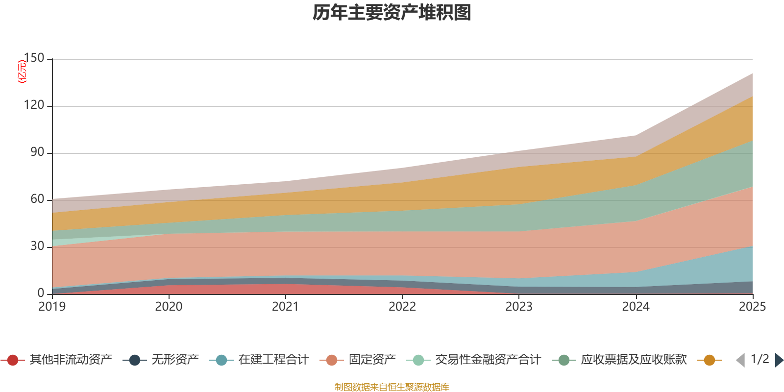 资产重大变化方面,截至2025年末,公司在建工程合计较上年末增加138.03%,占公司总资产比重上升6.66个百分点;固定资产较上年末增加15.71%,占公司总资产比重下降5.43个百分点;货币资金较上年末增加55.39%,占公司总资产比重上升2.09个百分点;应收票据及应收账款较上年末增加28.37%,占公司总资产比重下降1.75个百分点。