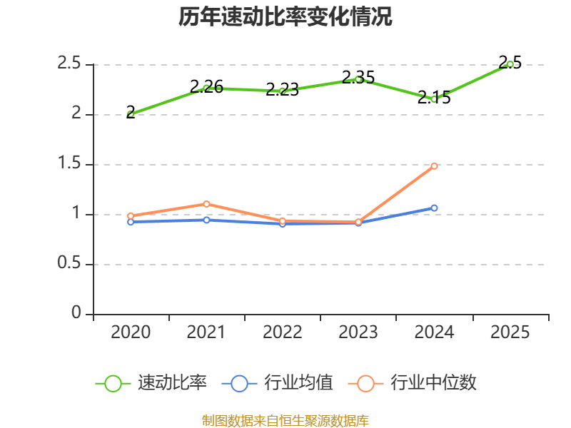 2025年,公司流动比率为2.63,速动比率为2.5。