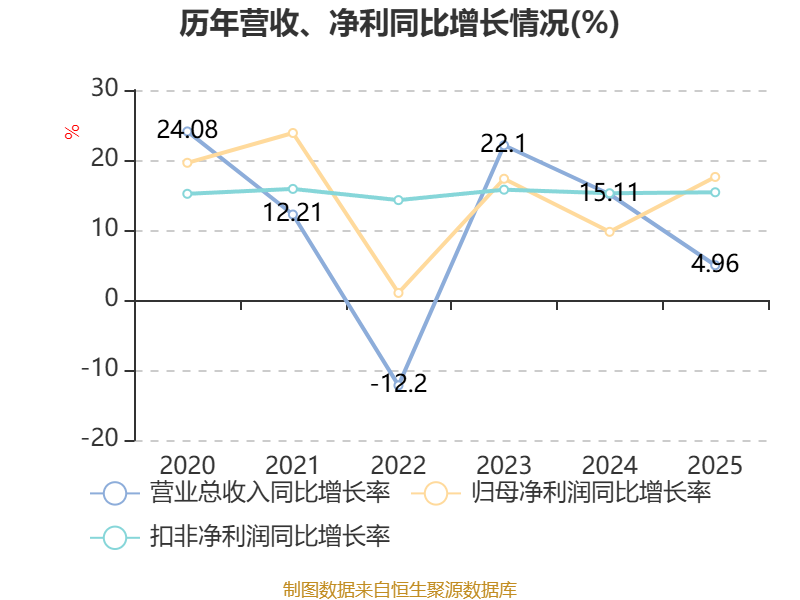 2025年全年,公司研发投入金额为3.47亿元,同比增长3.35%;研发投入占营业收入比例为6.98%,相比上年同期下降0.16个百分点。此外,公司全年研发投入资本化率为0%。