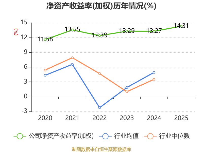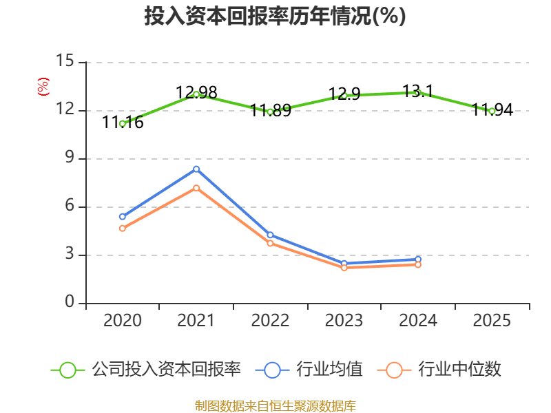 数据显示,2025年公司加权平均净资产收益率为14.31%,较上年同期上升1.04个百分点。公司2025年投入资本回报率为11.94%,较上年同期下降1.16个百分点。