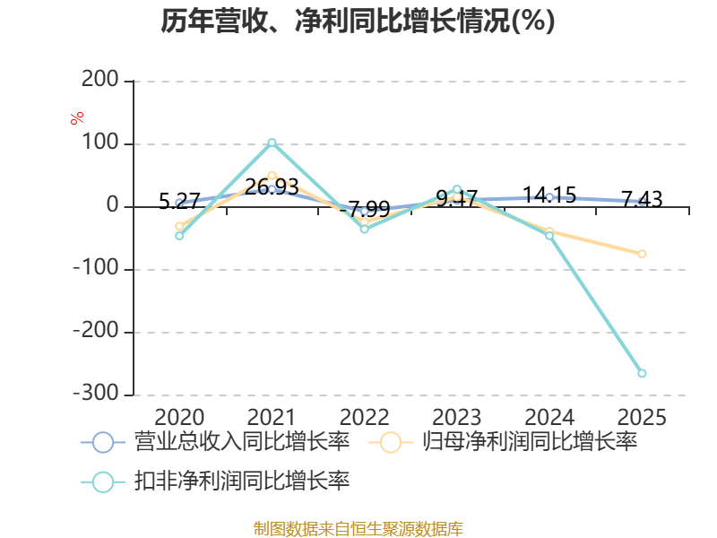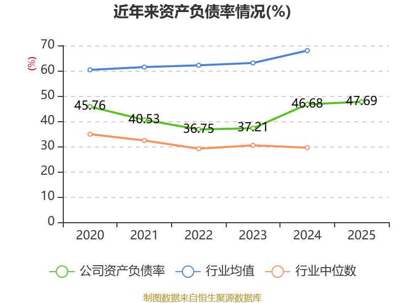 负债重大变化方面,截至2025年末,公司长期借款较上年末减少28.08%,占公司总资产比重下降3.24个百分点;一年内到期的非流动负债较上年末增加68.99%,占公司总资产比重上升2.21个百分点;应付票据及应付账款较上年末增加15.36%,占公司总资产比重上升2.1个百分点;短期借款较上年末增加8.35%,占公司总资产比重上升0.43个百分点。