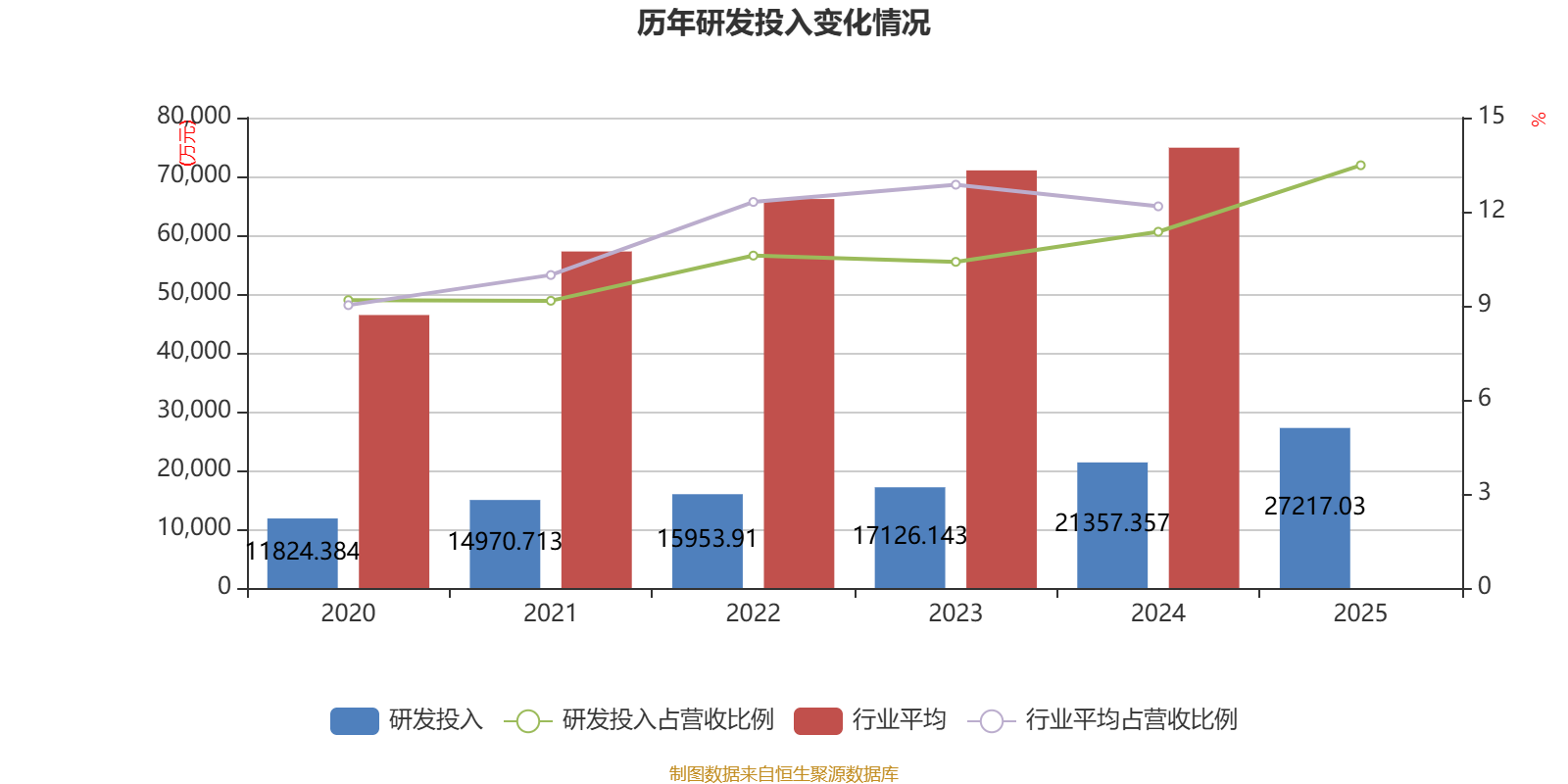 2025年全年,公司研发投入金额为2.72亿元,同比增长27.44%;研发投入占营业收入比例为13.48%,相比上年同期上升2.12个百分点。此外,公司全年研发投入资本化率为0%。