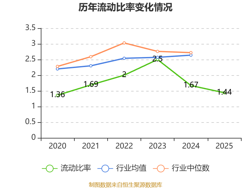 2025年,公司流动比率为1.44,速动比率为1.01。