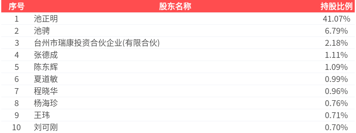 公司股东户数为1.06万户,前十大股东持股数量为6464.95万股,占总股本比例为56.35%,前十大股东持股情况如下: