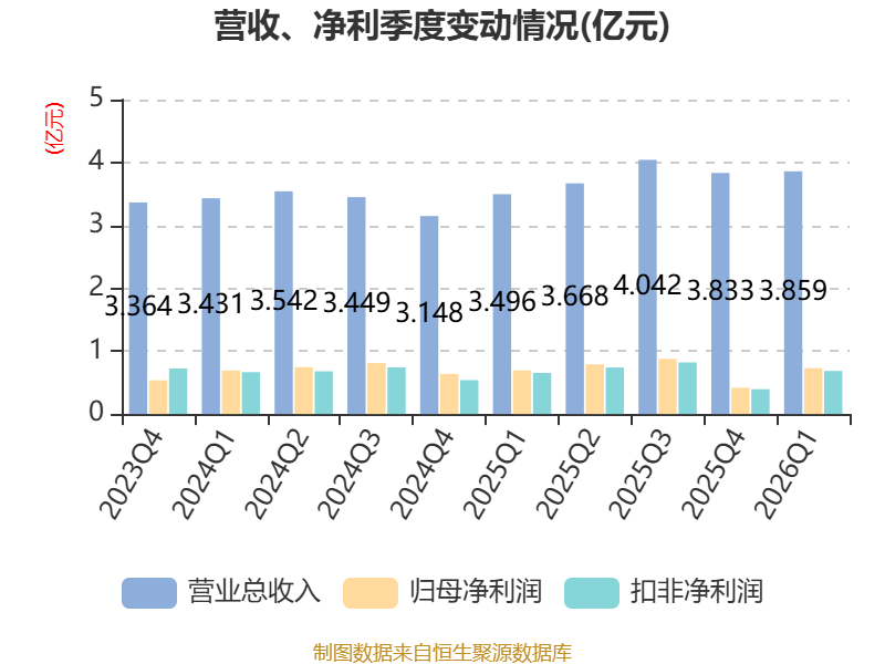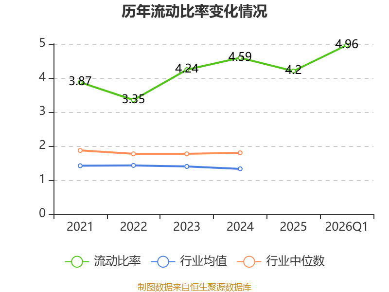 2026年第一季度,公司流动比率为4.96,速动比率为4.03。