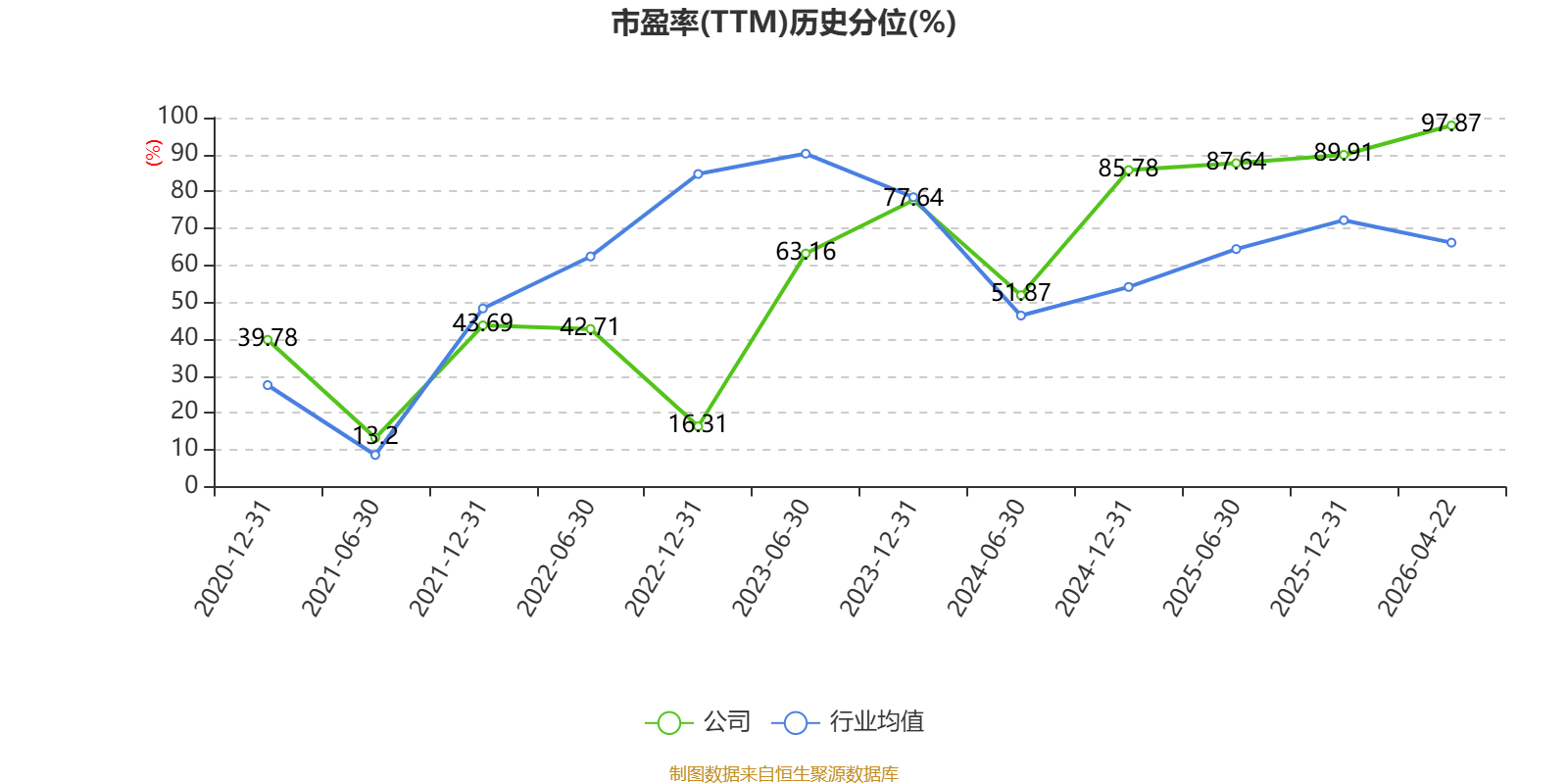 市盈率、市净率为负时,不显示当期分位数,会导致折线图中断。