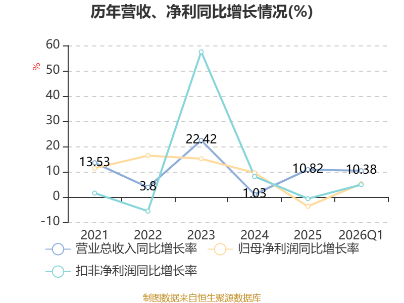 负债重大变化方面,截至2026年一季度末,公司应付票据及应付账款较上年末减少17.78%,占公司总资产比重下降1.46个百分点;应付职工薪酬较上年末减少41.34%,占公司总资产比重下降0.46个百分点;其他应付款(含利息和股利)较上年末减少45.06%,占公司总资产比重下降0.23个百分点;长期递延收益较上年末减少4.52%,占公司总资产比重下降0.18个百分点。