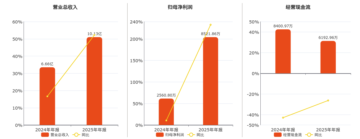 公司营业总收入为10.13亿元,在已披露的同业公司中排名第106。归母净利润为8521.86万元,在已披露的同业公司中排名第106。经营活动现金净流入为6192.96万元,在已披露的同业公司中排名第122,较去年同报告期经营活动现金净流入减少2208.01万元,同比较去年同期下降26.28%。
