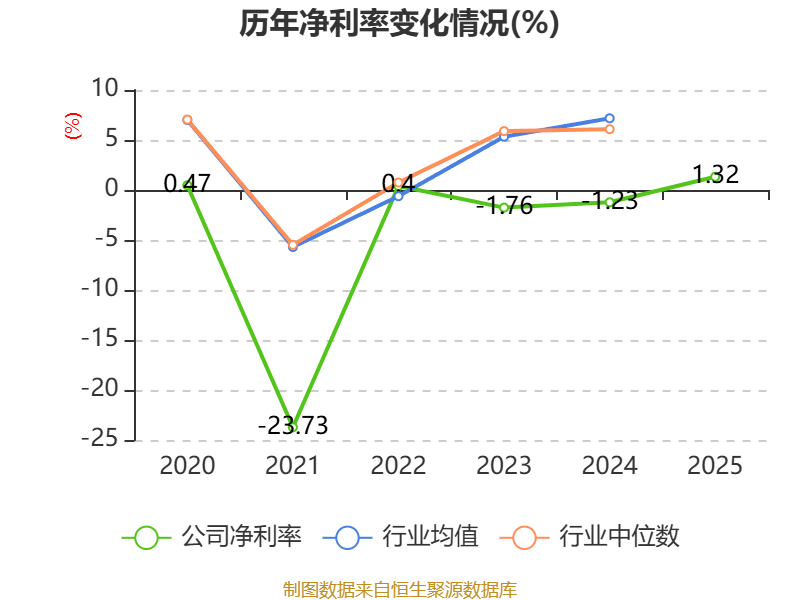 数据显示,2025年公司加权平均净资产收益率为5.64%,较上年同期上升12.51个百分点。公司2025年投入资本回报率为1.43%,较上年同期下降0.37个百分点。