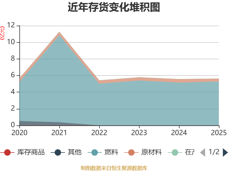 从存货变动来看,截至2025年末,公司存货账面价值为5.63亿元,占净资产的34.41%,较上年末增加595.02万元。其中,存货跌价准备为1377.3万元,计提比例为2.39%。