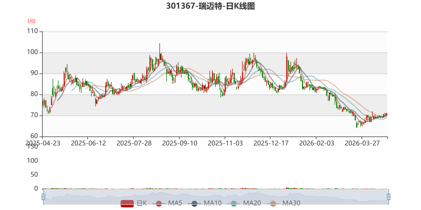 中证智能财讯瑞迈特(301367)4月23日披露2025年年度报告。2025年,公司实现营业总收入11.59亿元,同比增长37.46%;归母净利润2.26亿元,同比增长45.23%;扣非净利润1.85亿元,同比增长99.72%;经营活动产生的现金流量净额为1.3亿元,同比下降15.52%;报告期内,瑞迈特基本每股收益为2.54元,加权平均净资产收益率为7.72%。公司2025年度分配预案为:拟向全体股东每10股转4股,派现6.6元(含税)。