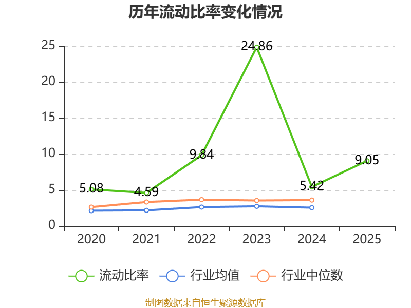 2025年,公司流动比率为9.05,速动比率为8.7。