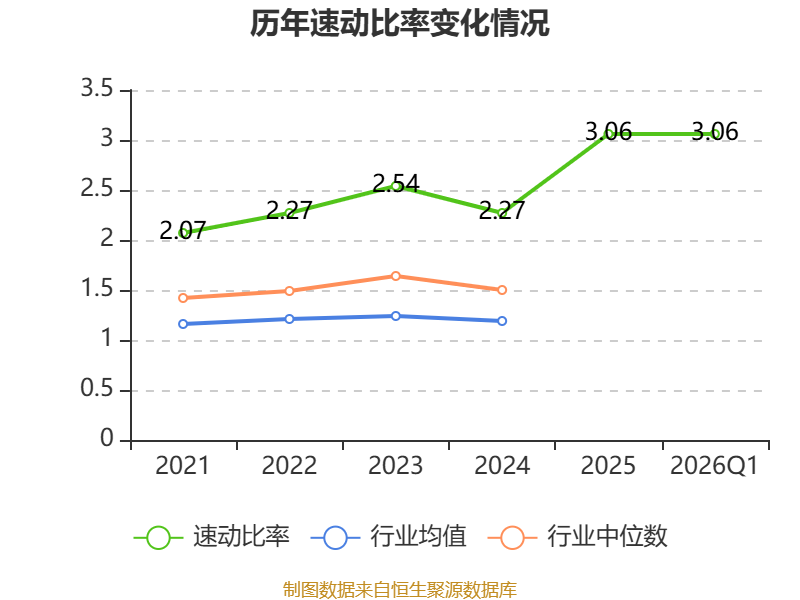 2026年第一季度,公司流动比率为3.5,速动比率为3.06。