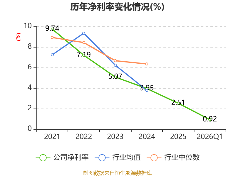 盈利能力方面, 2026年一季度公司加权平均净资产收益率为0.13%,同比下降0.46个百分点。公司2026年第一季度投入资本回报率为0.25%,较上年同期下降0.28个百分点。