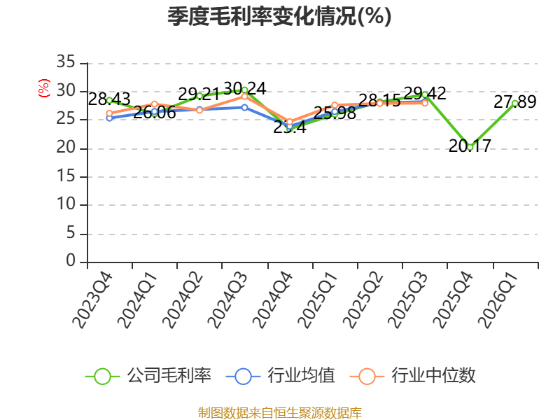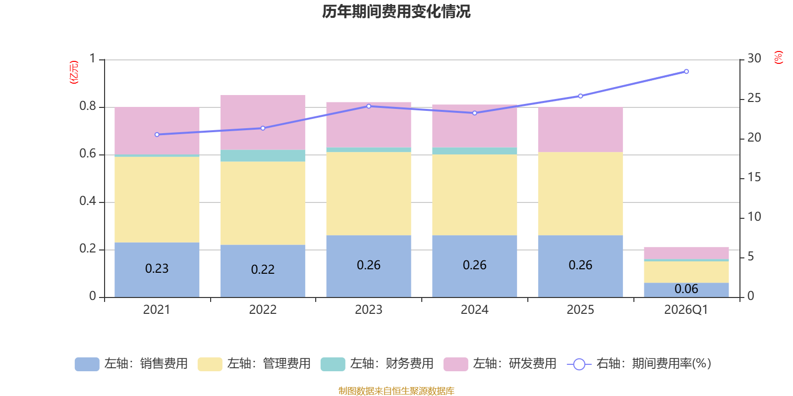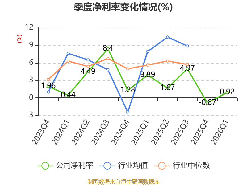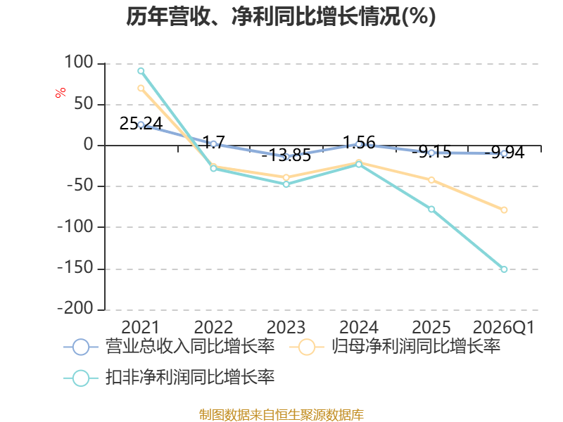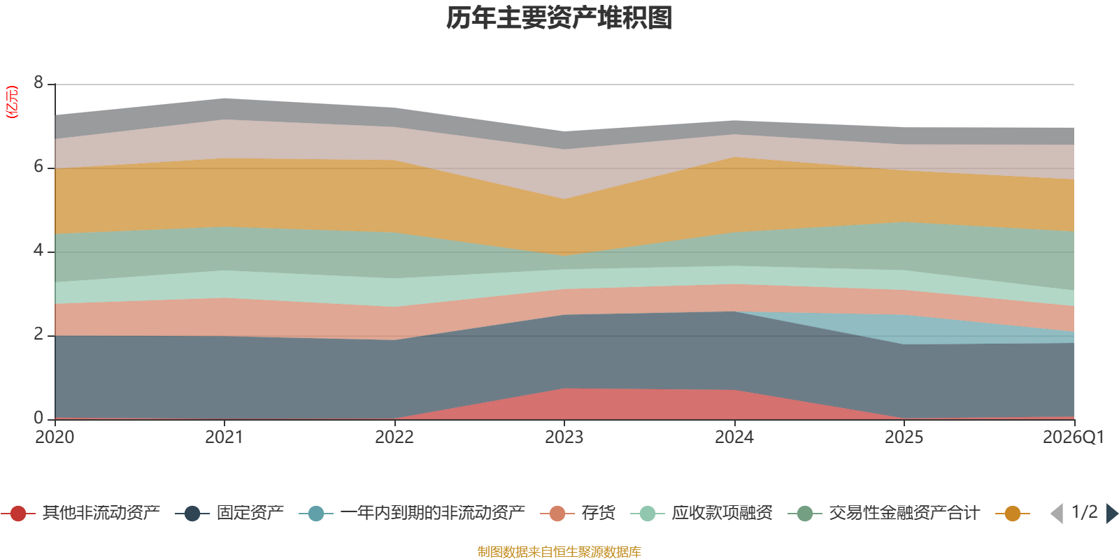 资产重大变化方面,截至2026年一季度末,公司一年内到期的非流动资产较上年末减少61.45%,占公司总资产比重下降6.22个百分点;交易性金融资产合计较上年末增加22.03%,占公司总资产比重上升3.68个百分点;货币资金较上年末增加33.49%,占公司总资产比重上升3个百分点;应收款项融资较上年末减少20.32%,占公司总资产比重下降1.36个百分点。