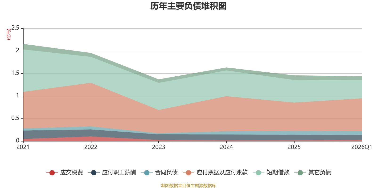 负债重大变化方面,截至2026年一季度末,公司短期借款较上年末减少20%,占公司总资产比重下降1.43个百分点;应付票据及应付账款较上年末增加15.33%,占公司总资产比重上升1.4个百分点;应付职工薪酬较上年末减少14.43%,占公司总资产比重下降0.25个百分点;合同负债较上年末增加9.02%,占公司总资产比重上升0.11个百分点。