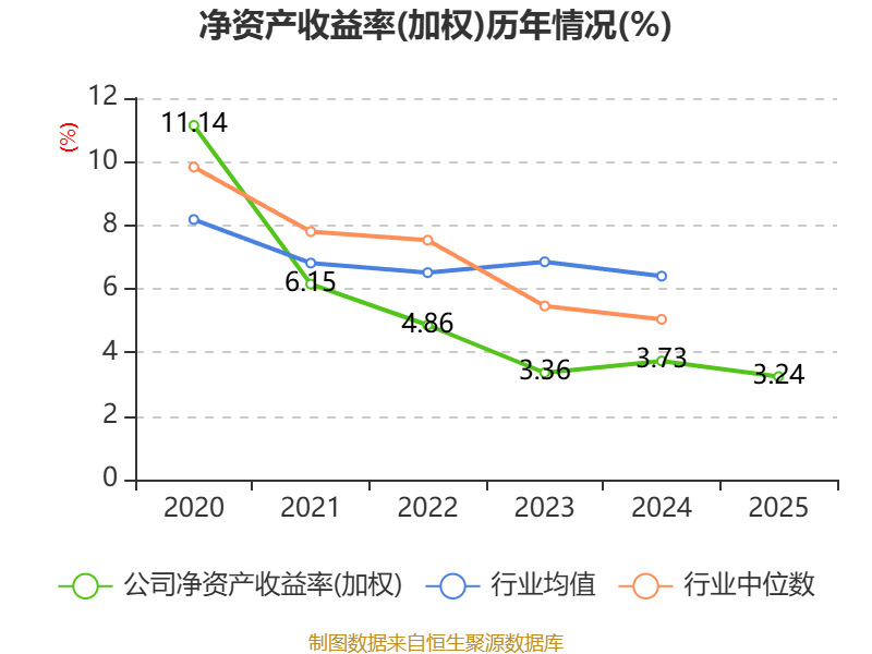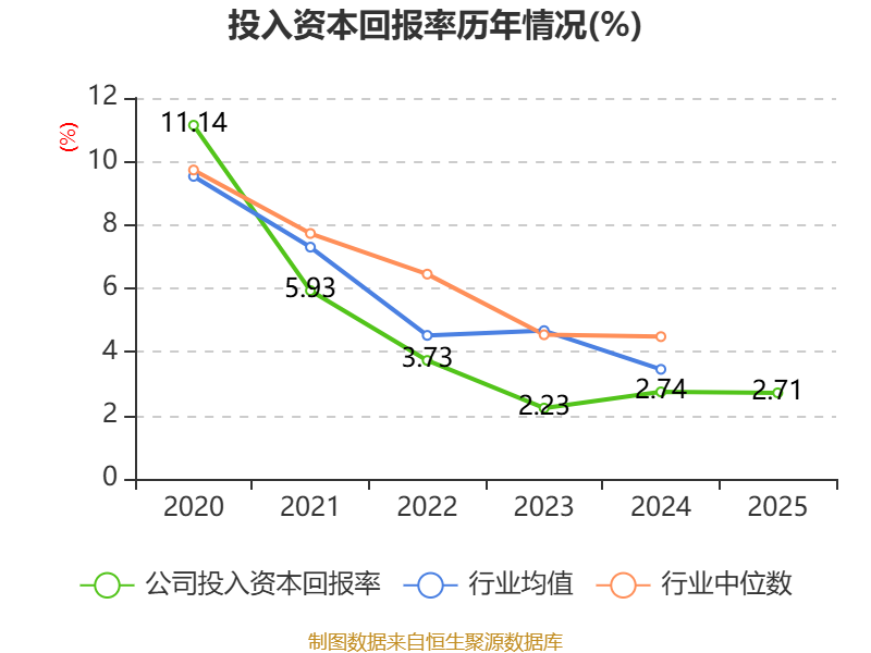 数据显示,2025年公司加权平均净资产收益率为3.24%,较上年同期下降0.49个百分点。公司2025年投入资本回报率为2.71%,较上年同期下降0.03个百分点。