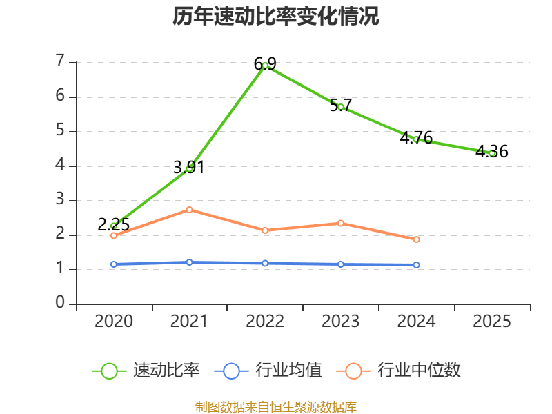 2025年,公司流动比率为4.86,速动比率为4.36。