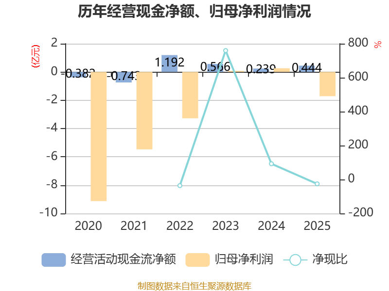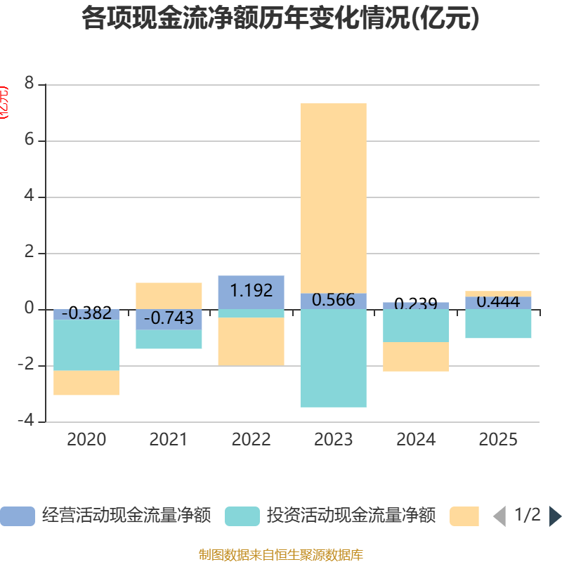 截至2025年,公司经营活动现金流净额为4436.26万元,同比增长85.34%;筹资活动现金流净额2007.04万元,同比增加1.24亿元;投资活动现金流净额-1.03亿元,上年同期为-1.18亿元。