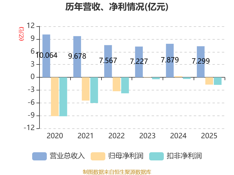 中证智能财讯立昂技术(300603)4月23日披露2025年年度报告。2025年,公司实现营业总收入7.3亿元,同比下降7.36%;归母净利润亏损1.71亿元,上年同期盈利2587.01万元;扣非净利润亏损1.78亿元,上年同期亏损3890.6万元;经营活动产生的现金流量净额为4436.26万元,同比增长85.34%;报告期内,立昂技术基本每股收益为-0.37元,加权平均净资产收益率为-12.44%。
