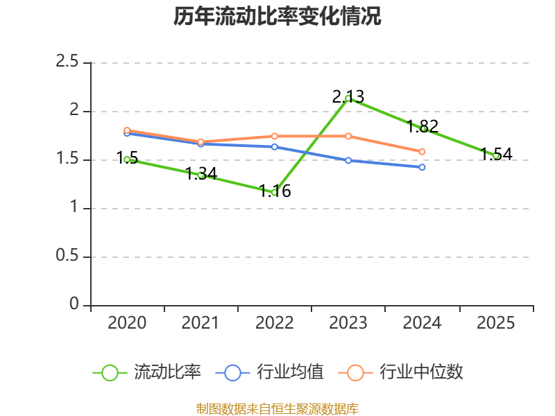 2025年,公司流动比率为1.54,速动比率为1.31。