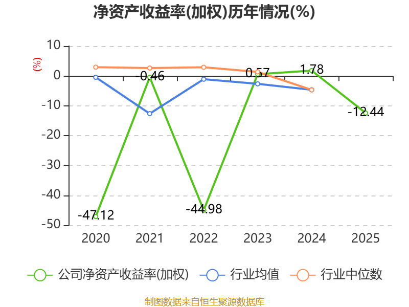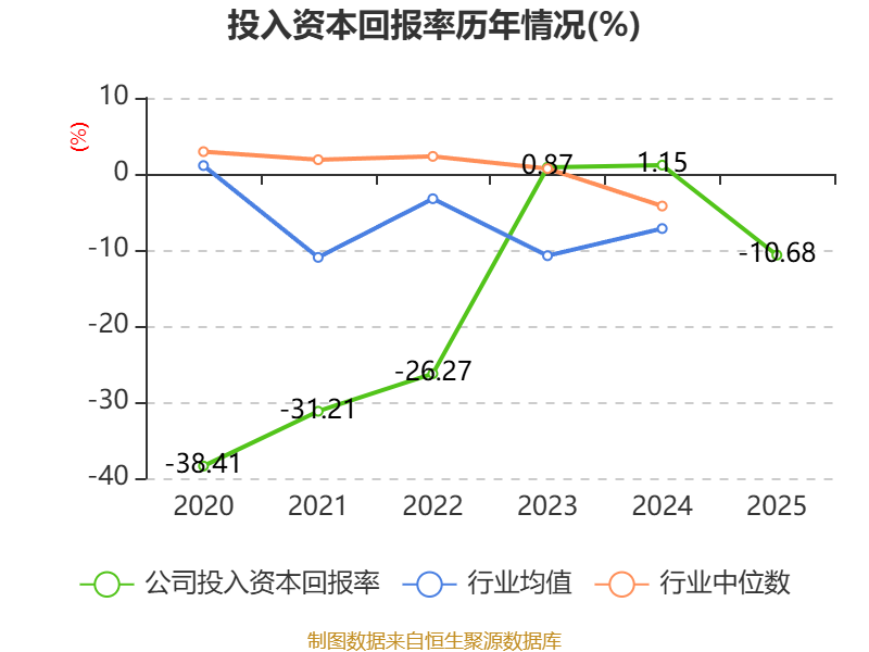 数据显示,2025年公司加权平均净资产收益率为-12.44%,较上年同期下降14.22个百分点。公司2025年投入资本回报率为-10.68%,较上年同期下降11.83个百分点。