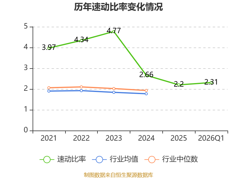 2026年第一季度,公司流动比率为3.08,速动比率为2.31。