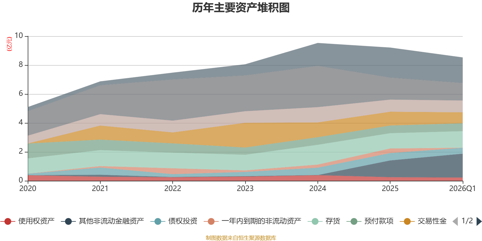 资产重大变化方面,截至2026年一季度末,公司其他非流动金融资产较上年末增加42.7%,占公司总资产比重上升6.78个百分点;一年内到期的非流动资产较上年末减少100%,占公司总资产比重下降3.45个百分点;其他流动资产较上年末减少95.81%,占公司总资产比重下降3.25个百分点;货币资金较上年末减少20.49%,占公司总资产比重下降2.34个百分点。