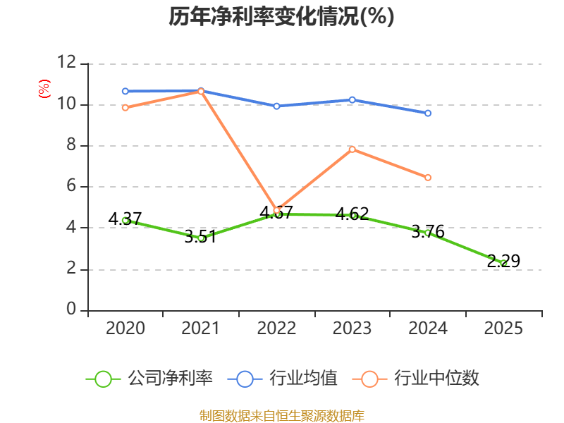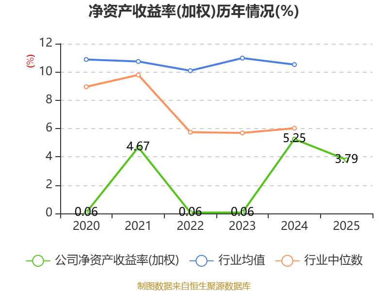 数据显示,2025年公司加权平均净资产收益率为3.79%,较上年同期下降1.46个百分点。公司2025年投入资本回报率为2.64%,较上年同期下降1.13个百分点。