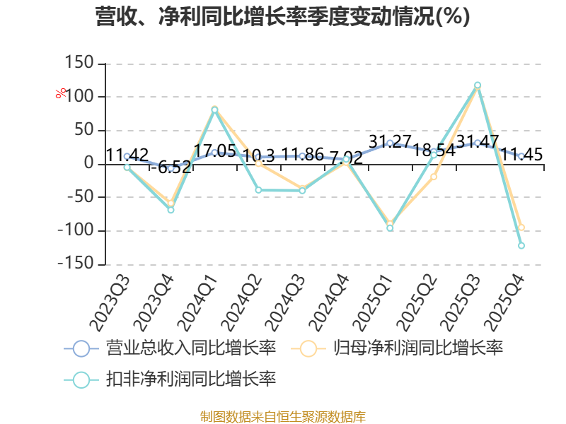 资产重大变化方面,截至2025年末,公司应收票据及应收账款较上年末减少11.19%,占公司总资产比重下降5.4个百分点;货币资金较上年末增加38.59%,占公司总资产比重上升5.21个百分点;应收款项融资占公司总资产的4.16%,上年末为0;存货较上年末减少0.7%,占公司总资产比重下降3.05个百分点。